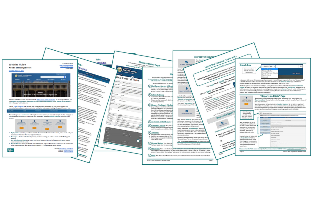 This help guide provides an initial orientation to the Hawaii State Legislature’s website and introduces you to some of its many useful features.